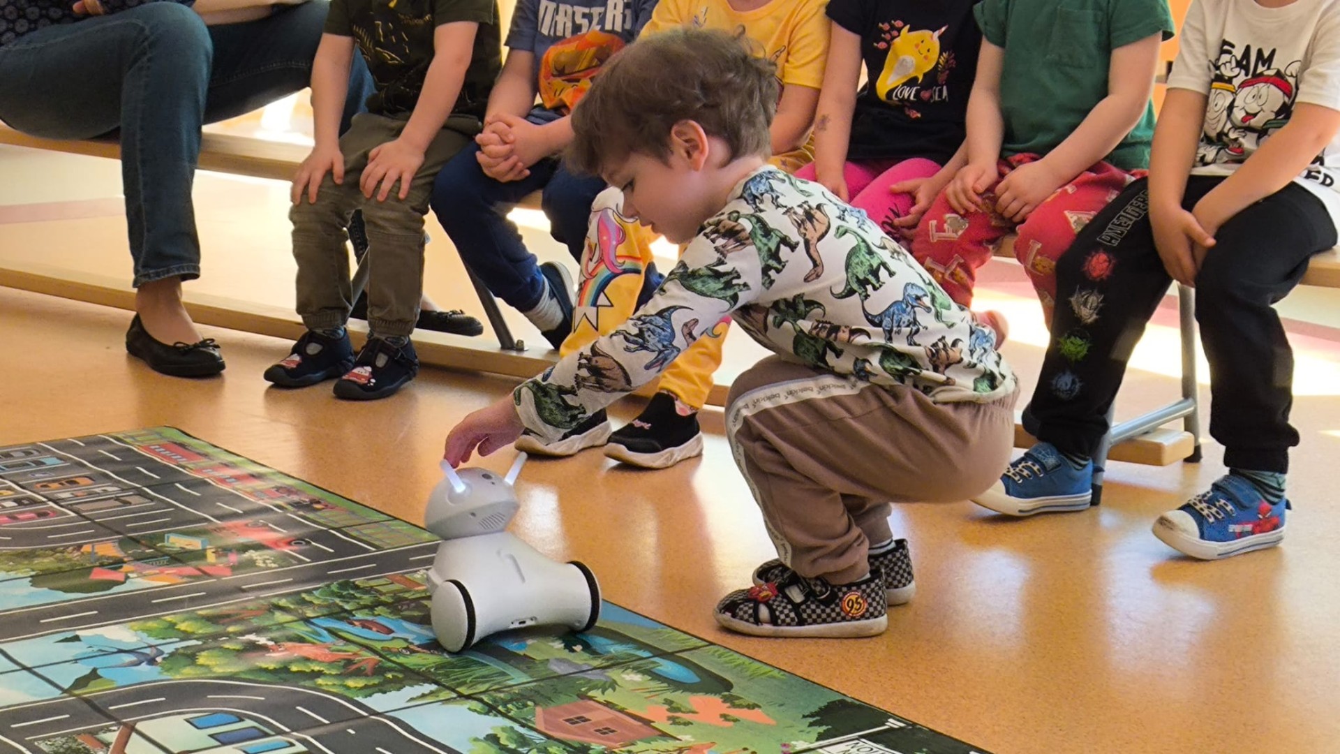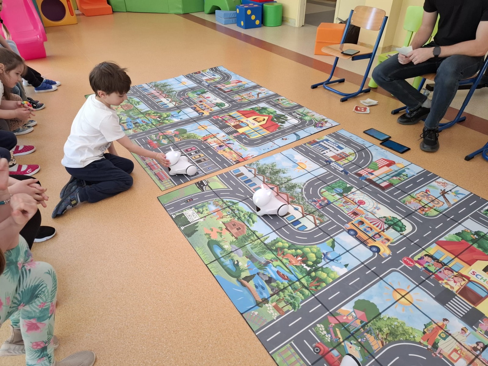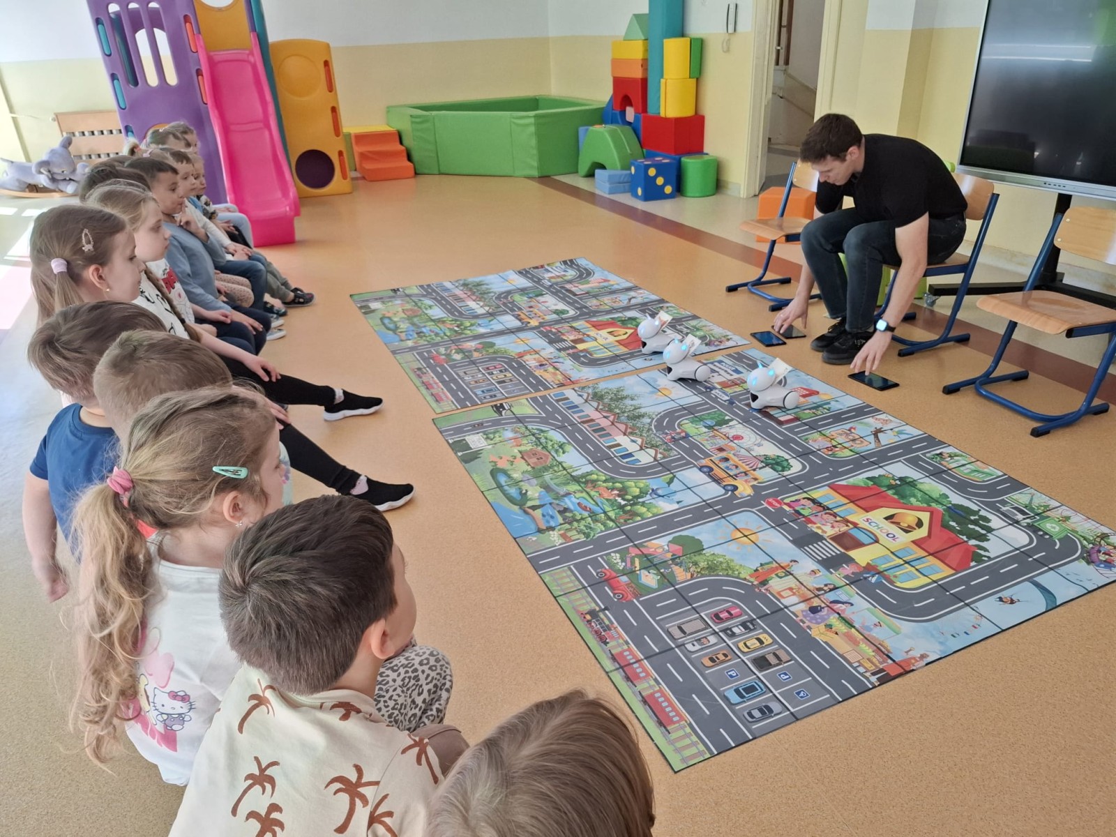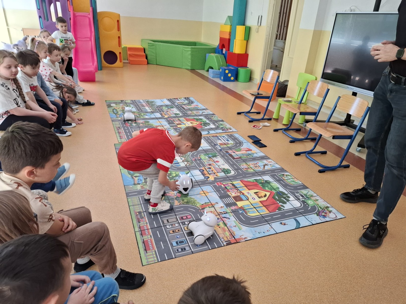 28 Kwietnia 202628 kwietnia 2026 roku, w naszym przedszkolu odbyły się warsztaty edukacyjne z robotyki poprowadzone przez pracownika Agencji Szkolno-Przedszkolnej Lupus. Dzieci miały okazję poznać podstawy programowania i zapoznać się z czujnikami robotów. Warsztaty oprócz elementarnej wiedzy z zakresu programowania, dostarczyły dzieciakom również mnóstwo zabawy.